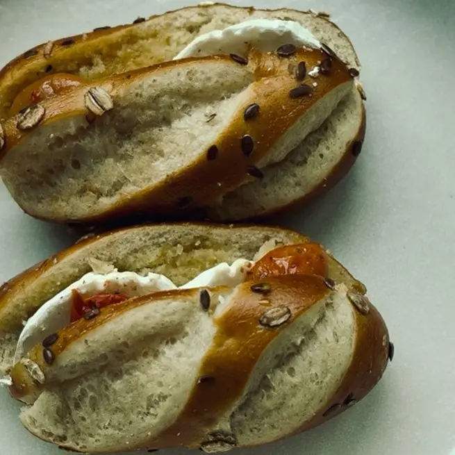 Pesto parmesan, œuf mimosa, chèvre & miel