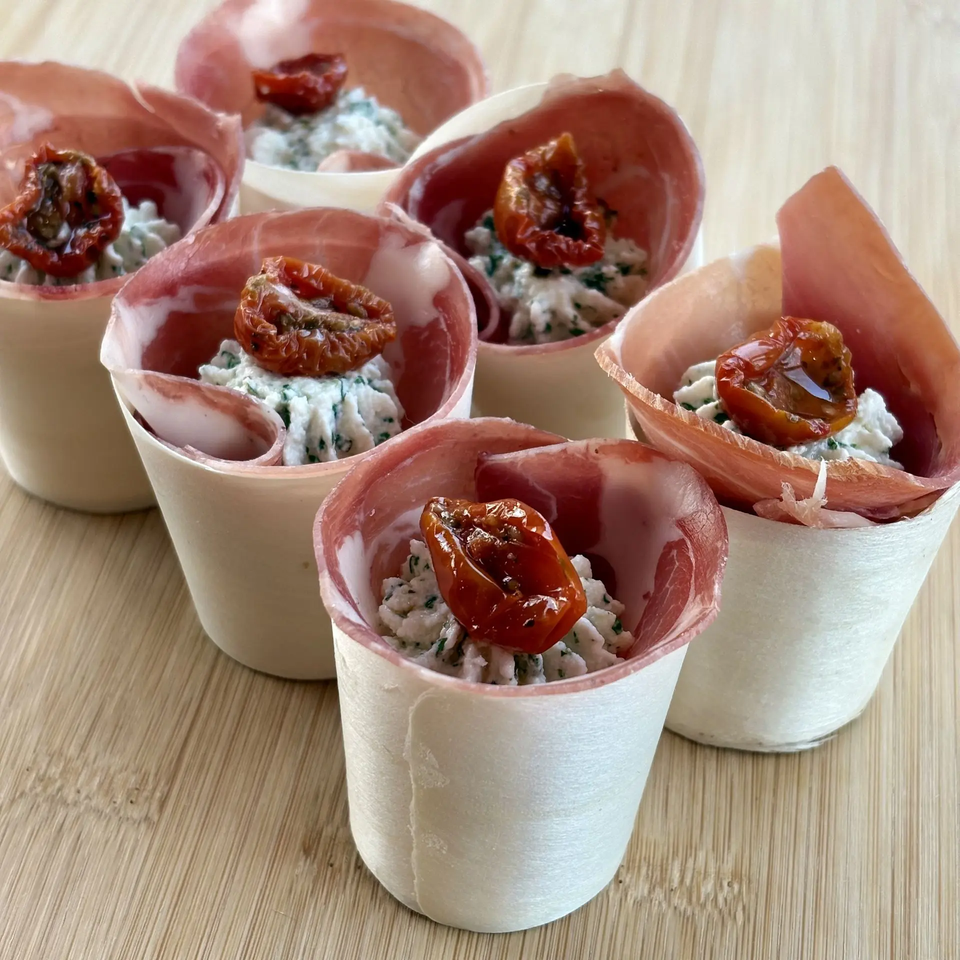 Œuf mimosa, pesto thon, tomatade & bresaola